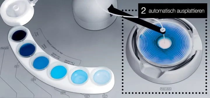 Automatische Spiral Methode ermöglicht alle Verdünnungstufenauf einer einzigen Petrischale zu analysieren !