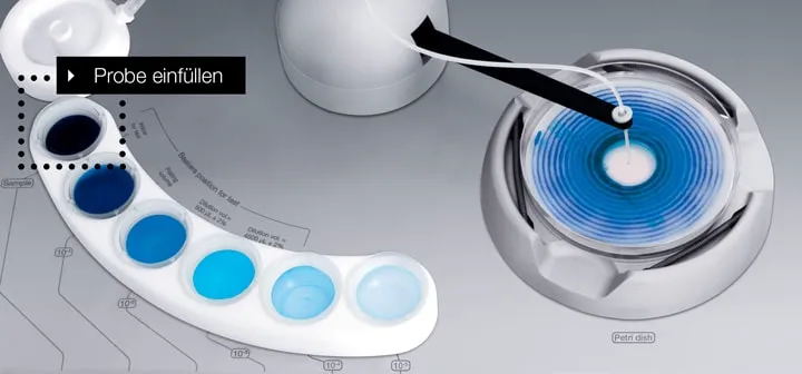 Sie erhalten eine auswertbare Petrischale von 100 bis 1 x 1012 KBE/ml