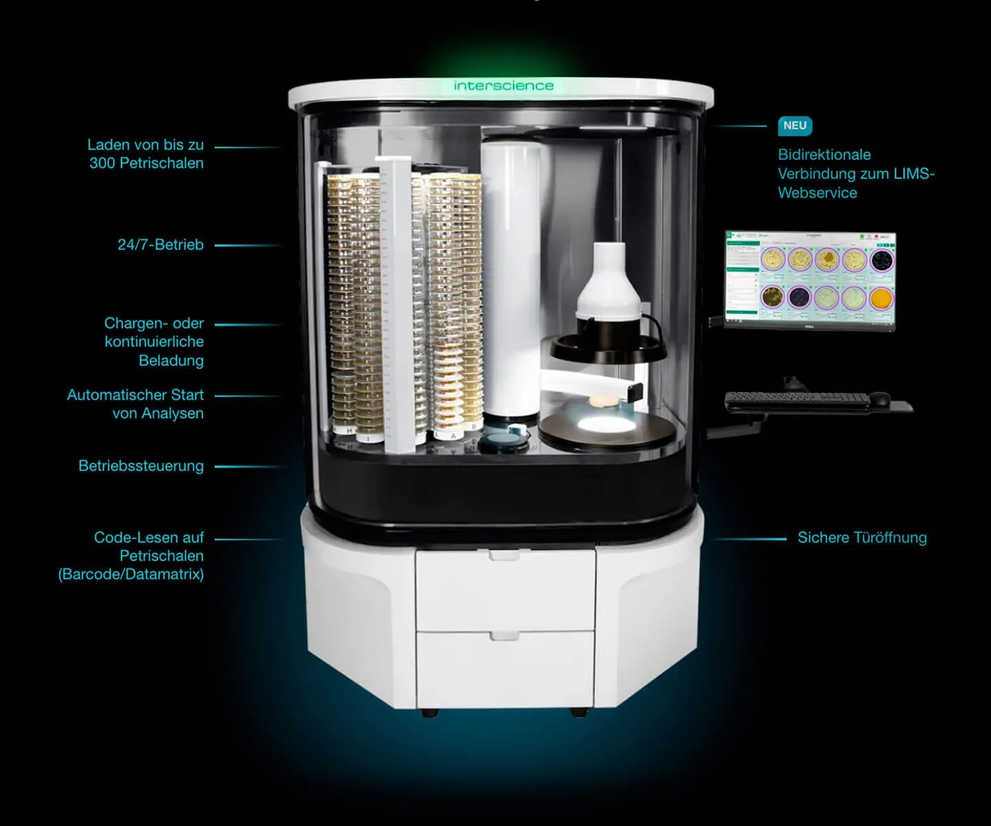 Die KI-Software von ScanStation V9 ermöglicht die Erkennung und Unterscheidung von Schimmelpilzen und Bakterien in einem frühen Stadium der Inkubation.
