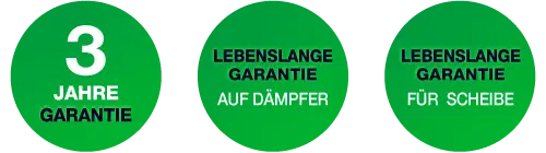 | Lebenslange Garantie | Scheibe und Stossdämpfer |