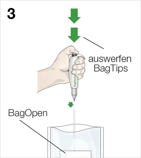 Die BagTips Einweg-Kanülen werden steril geliefert, erreichen aufgrund ihrer Länge den Beutelboden und sind in zwei Größen erhältlich : Regular und Jumbo. BagPipet beugt der Gefahr einer Kreuzkontamination vor.