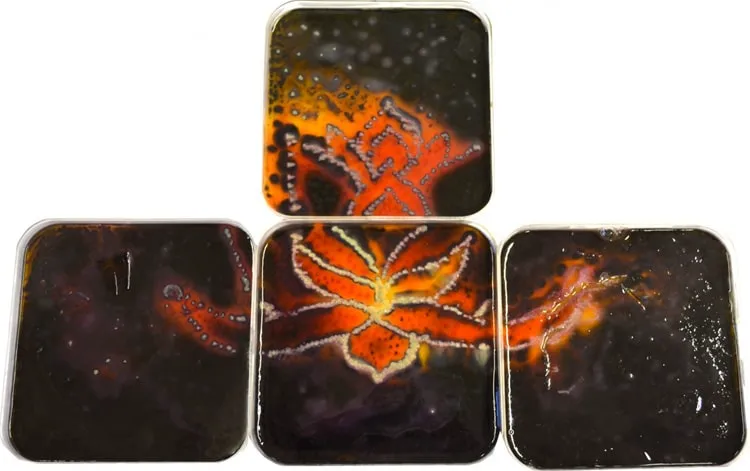 ❯ Citrobacter (produziert H2S bei 37°C, was die Schwarzfärbung ermöglicht, und säuert das Medium an, das dann gelb wird) für die Konturen der Blume,
