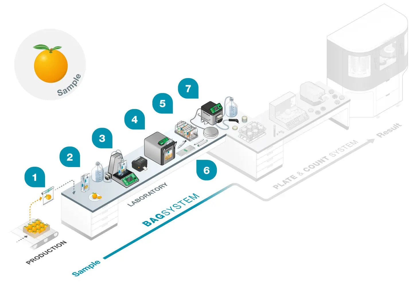 BagSystem automates the sample preparation for microbiological or chemical analyses. The analyses are more reliable, accurate and repeatable. Traceability is guaranteed at each step of the sample preparation. It is used in all range of applications.