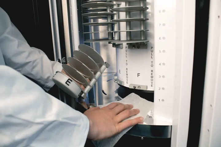 The high performance telecentric lens allows the Petri dish to be viewed in an absolute vertical position, without perspective distortion. The surface area around the edge of the dish, where the agar meniscus makes counting more difficult, is reduced. By reducing this area from 9% to 5% of the total surface of the Petri dish, counting performance increases. Typical counting accuracy increases from 95% to 97.5%. This is crucial for the pharmaceutical industry, where a colony on the edge of the dish can make the difference between a positive or negative result, especially in the monitoring of air quality in clean rooms. This new feature is standard on the ScanStation 300 model.
