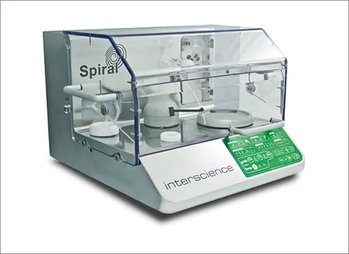 The easySpiral plater is used for enumeration during microbial control. The Spiral plating technique is often used for the detection of microorganisms with a quality criterion higher than 100 CFU/g. ISO 4833-2 regulates the use of this technique for the detection of total flora, which requires 4 or more dilutions before plating. The Spiral technique allows for 4 log dilutions on the same Petri dish.