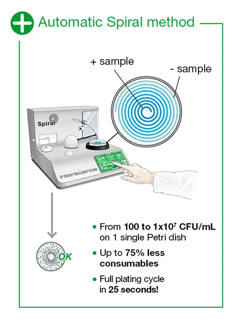 With Automatic Spiral method, make your analyses on 1 single Petri dish!