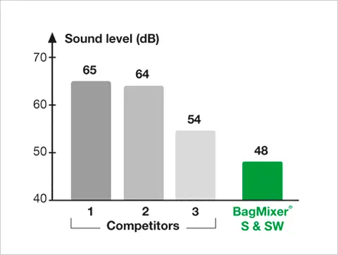 The new brushless motor technology allows the BagMixer to consume 50% less energy than competitors. The new AutoSleep function puts it in sleep mode after 30 minutes of inactivity.