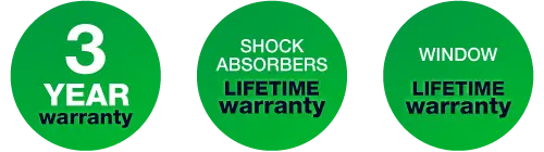 | Lifetime warranty | Window door and Shock absorbers |