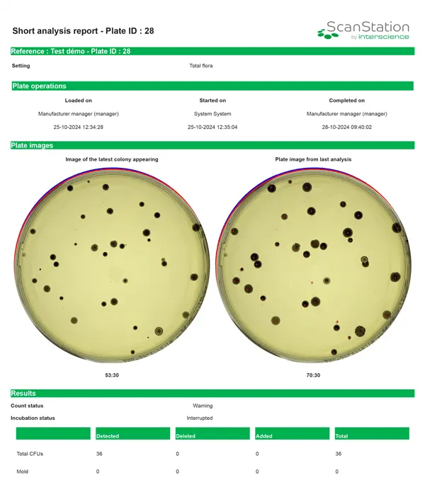 ScanStation saves images and videos of bacterial growth, from the beginning to the end of incubation. Data can be retrieved beyond the incubation date.