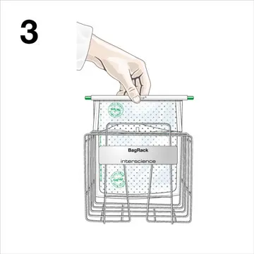 BagClip permite almacenar y cerrar temporalmente cualquier bolsa de preparación de muestras durante su análisis microbiológico. Se utiliza en los sectores alimentario, farmacéutico y cosmético.