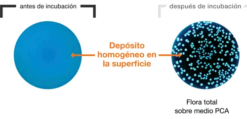 | Cumple con | ISO 7218, ISO 4833-2, FDA BAM (Manual Análitico Bacteriológico) y AOAC 977.27 |
