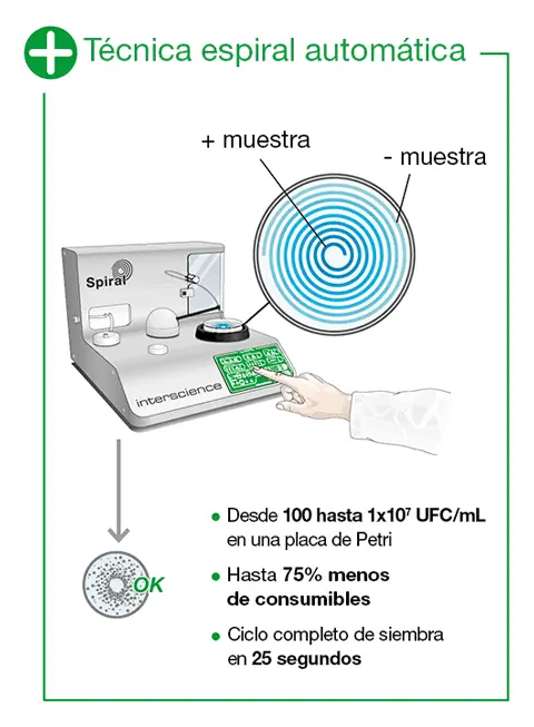 ¡Con la técnica automática espiral, realice su análisis en una sola placa de Petri!
