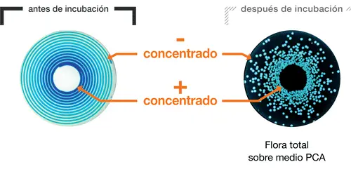 El modo exponencial es una siembra en superficie con una concentración logarítmicamente decreciente. Siembre 50 µL o 100 µL.