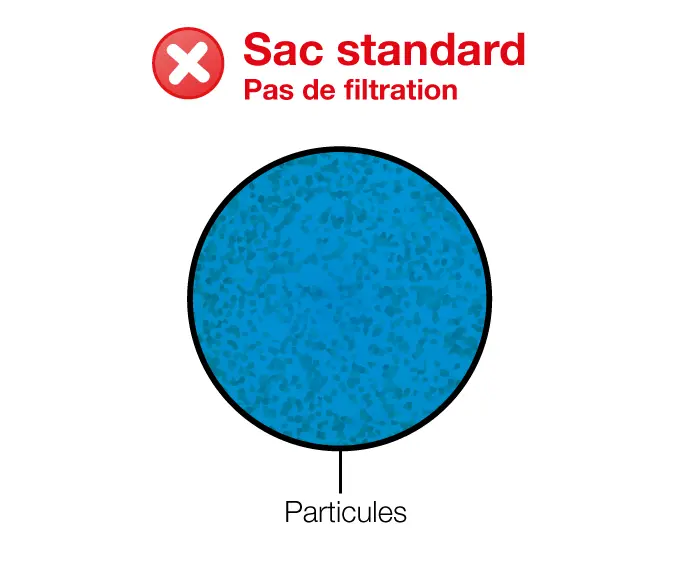 Particules d’échantillon diluées et malaxées dans le sac
