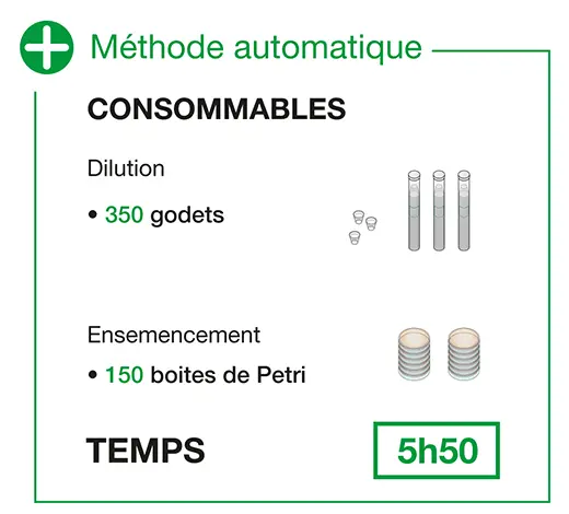 | Durée pour 1 désinfection + 5 dilutions + 1 ensemencement d’1 dilution | 134 s |