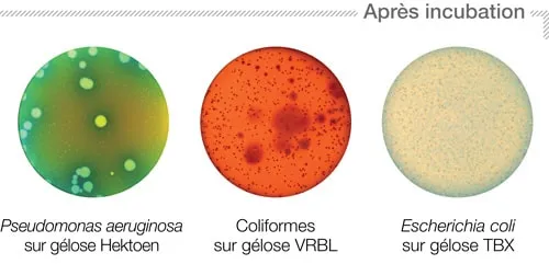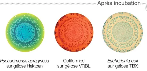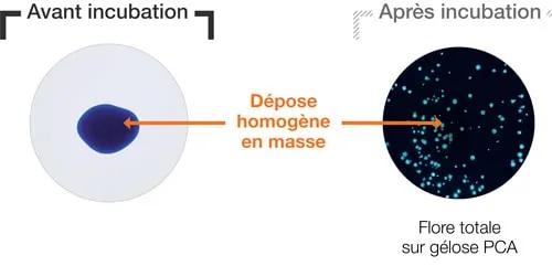 La lecture est facilitée en cas de colonies envahissantes. Cette technique est conforme au référentiel pharmacopée.