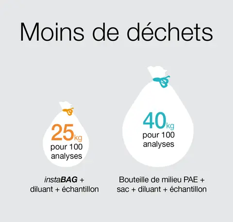 instaBAG MILK est un sac-filtre intégrant un sachet pré-dosé de lait en poudre. Ajoutez un échantillon, diluez, malaxez : votre échantillon est prêt pour l’analyse.