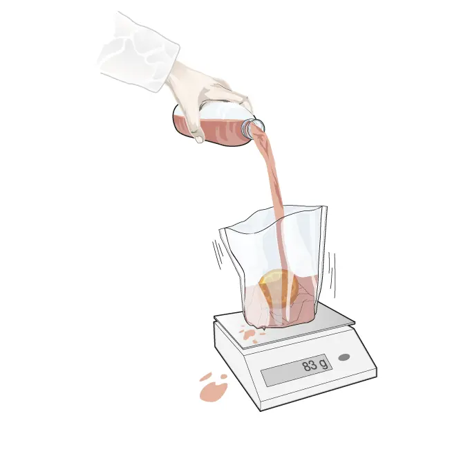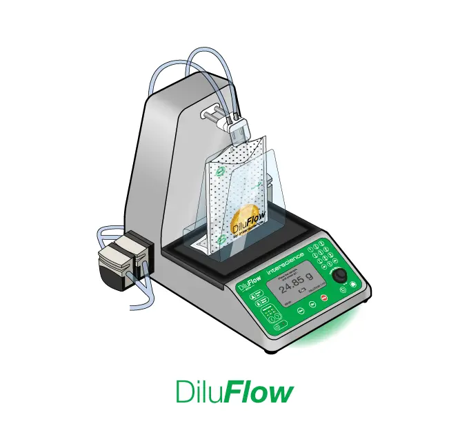 サンプルを秤量し、希釈液をマニュアル式に加えます。