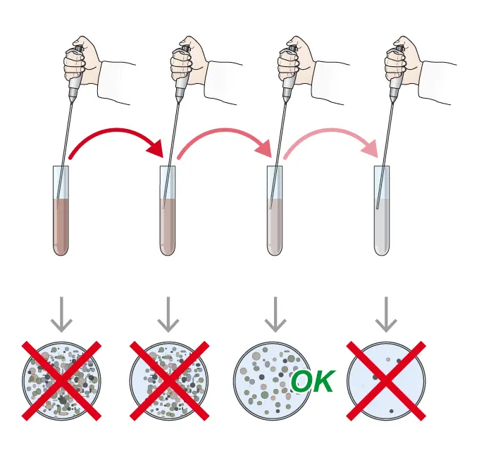 • シャーレ1枚あたり100~1x107 CFU/mL
