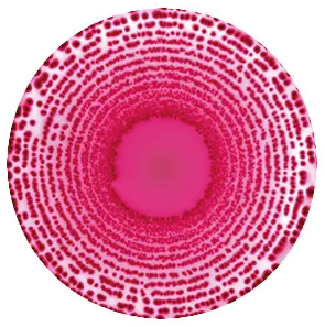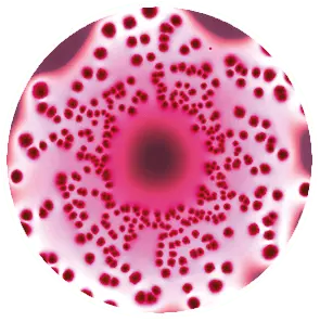 スパイラル法を用いた、異なる濃度の大腸菌のマッコンキー培地へのプレーティング例