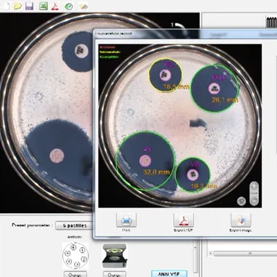Scan 自動阻止円ゾーン測定機で EUCAST, CASFM, CLSI... に従った多剤耐性のSIR分析と解析