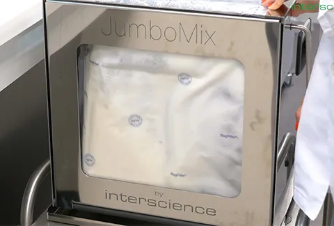 Interscience、最大 10000mL まで収容可能な RollBag サンプリングバッグを提供しています。また、ホモジナイザー用の BagFilter (バッグフィルター)、BagPage (バッグページ)、BagLight (バッグライト) も、2000mL および 3500mL のサイズで提供されています。