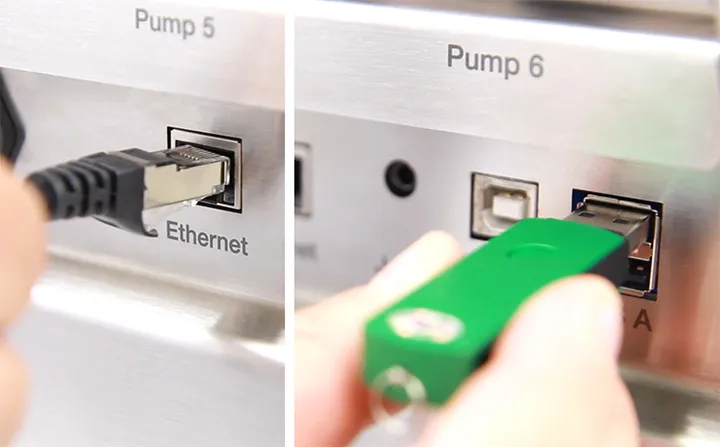 DiluFlow Elite はカスタマイズ可能な24のプログラムでプログラム可能です。トレーサビリティは、LIMSへの双方向イーサネット接続によって確保されます。DiluFlow Elite は分析データをプリンタ、USBスティック、ExcelTM、Open OfficeTM、CSVおよびLIMS(CSVファイル共有またはWebサービス)にエクスポートします。
