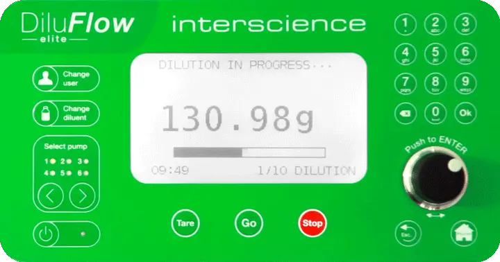 DiluFlow Elite 1 kg グラビメトリック希釈装置は、医薬品および化粧品サンプルにおける微生物分析の前処理用に使用されます。微生物分析サンプルの調整に使用します。1〜20gのサンプルを10倍に希釈するのに最適です。DiluFlow Elite 1 kgを使用すると、分析するサンプルを試験管やジャーまたはボトルに調製することができます。例:有効成分、クリーム、メイクアップ…