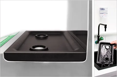 希釈液が機器の上に飛び散った場合、安全ドリップトレーを簡単に外し、洗い流して、煩雑な機器のクリーニングを避けることができます。