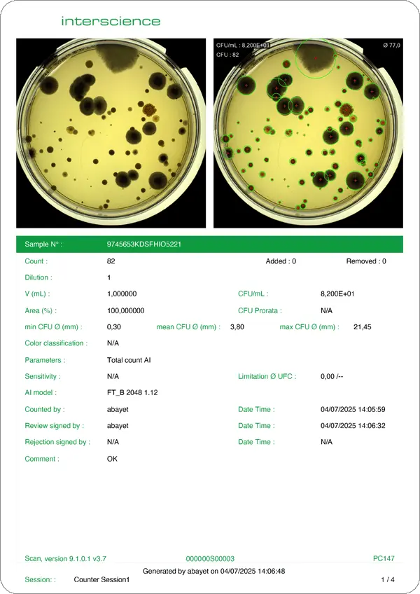 自動コロニーカウンターScan Ai の人工知能の力がシャーレの分析を強化します。Scan Ai はコロニーカウントを標準化し、分析結果の精度を向上させます。技術チームの科学的専門知識は持続的に保たれます。