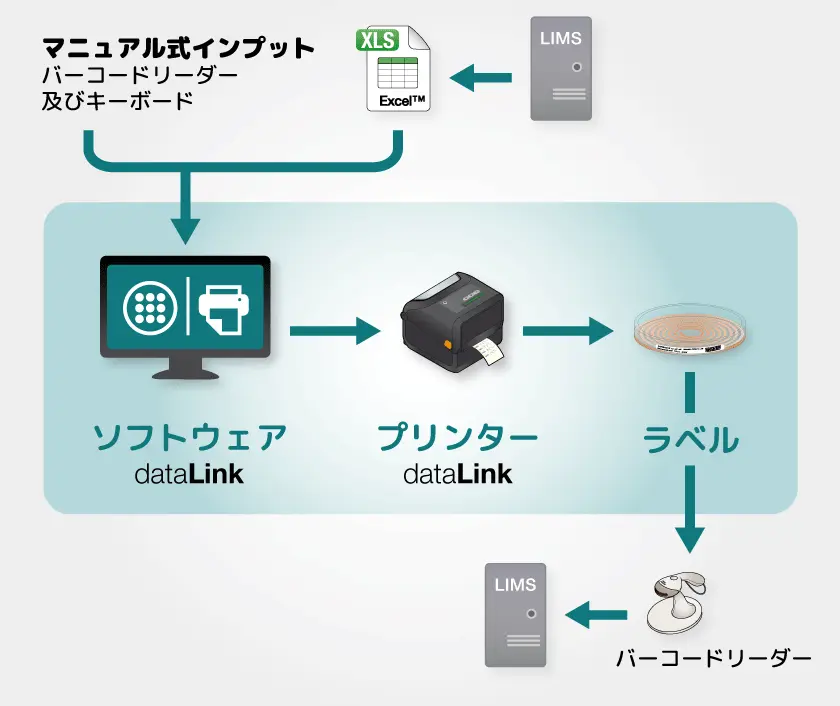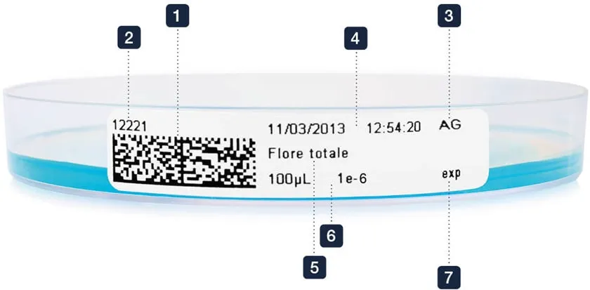 dataLink パックにより、サンプルからの分析データが確実に送信されます。 このようにして生成されたラベルはシャーレの ID カードとなり、マニュアル式入力エラーの回避に役立ちます。