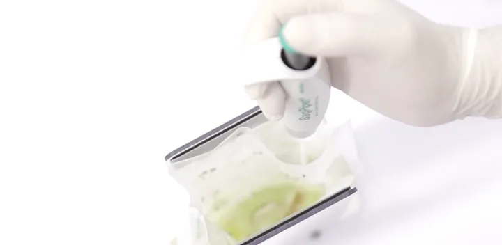 BagPipetは、食品・環境分析やパブリックリサーチでの微生物分析に使用されています。病原体研究のためのサンプルプーリングや二次増菌の際のピペティング時のクロスコンタミネーションを防止します。