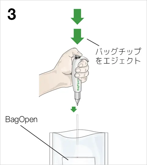 バッグピペットは、軽くて持ちやすく、どんな液体でも迅速にバッグから抽出します。容量は0.1 mL / 0.9 mL / 1 mLの3つの固定量セッティングから選べます(オプションで調節可能な容量プッシュボタンもつけれます)。使用後は使い捨てストローを簡単にエジェクトできます。