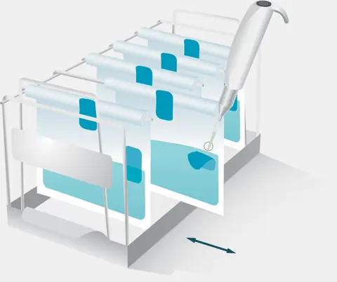 バッグラック スライドとの併用でワークステーションが改善されます。R.S.I. (反復性過労障害)を防ぎ、ピペティングが効率化されます。