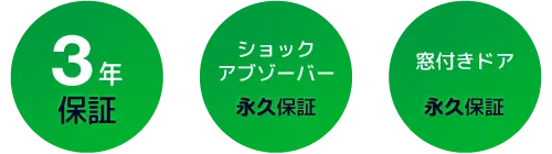 | 永久保証 | 窓付きドア、ショックアブゾーバー | |