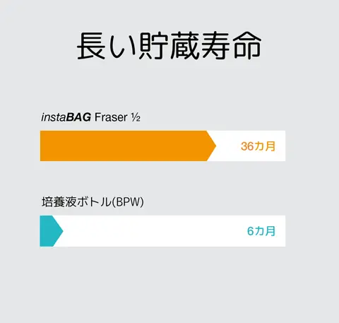 instaBAG は2つの行程がひとつでできる、定量の乾燥培地ハーフフレーザー(サプリメント入り)を備えたフィルターバッグです。時間がかかる培地の準備をスキップします。