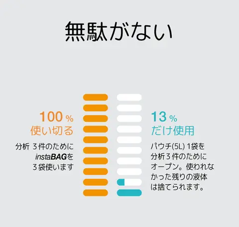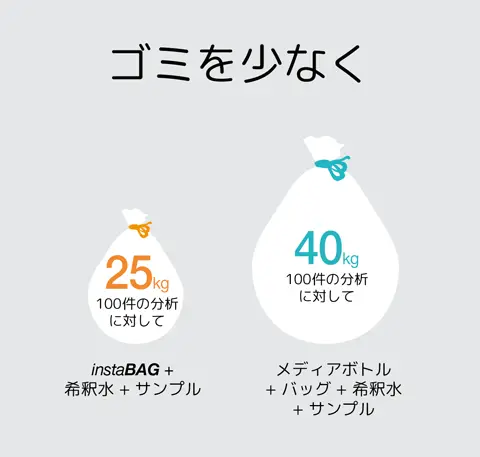 instaBAGは、定量のミルクパウダーの小袋が入ったフィルターバッグです。 サンプルを追加し、希釈し、ホモジナイズします。サンプル分析のための準備は、速やかに整います。