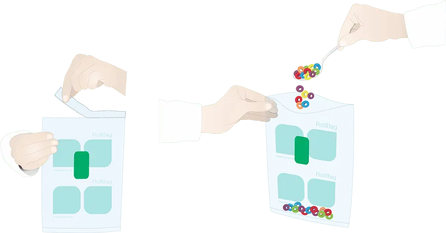 RollBag ロールバッグ・サンプリングバッグを使用すると、フィールドまたは生産エリアで直接サンプリングし、サンプルを安全かつ無菌状態で分析ラボに輸送することができます。また、冷凍庫やインキュベーターでの保管にも使用でき、サンプル分析の分析ワークフローに非常によく統合されます。